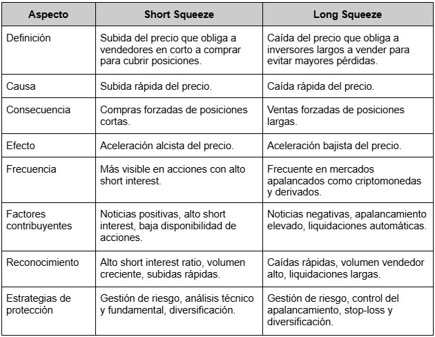 Comparación entre Short Squeeze y Long Squeeze